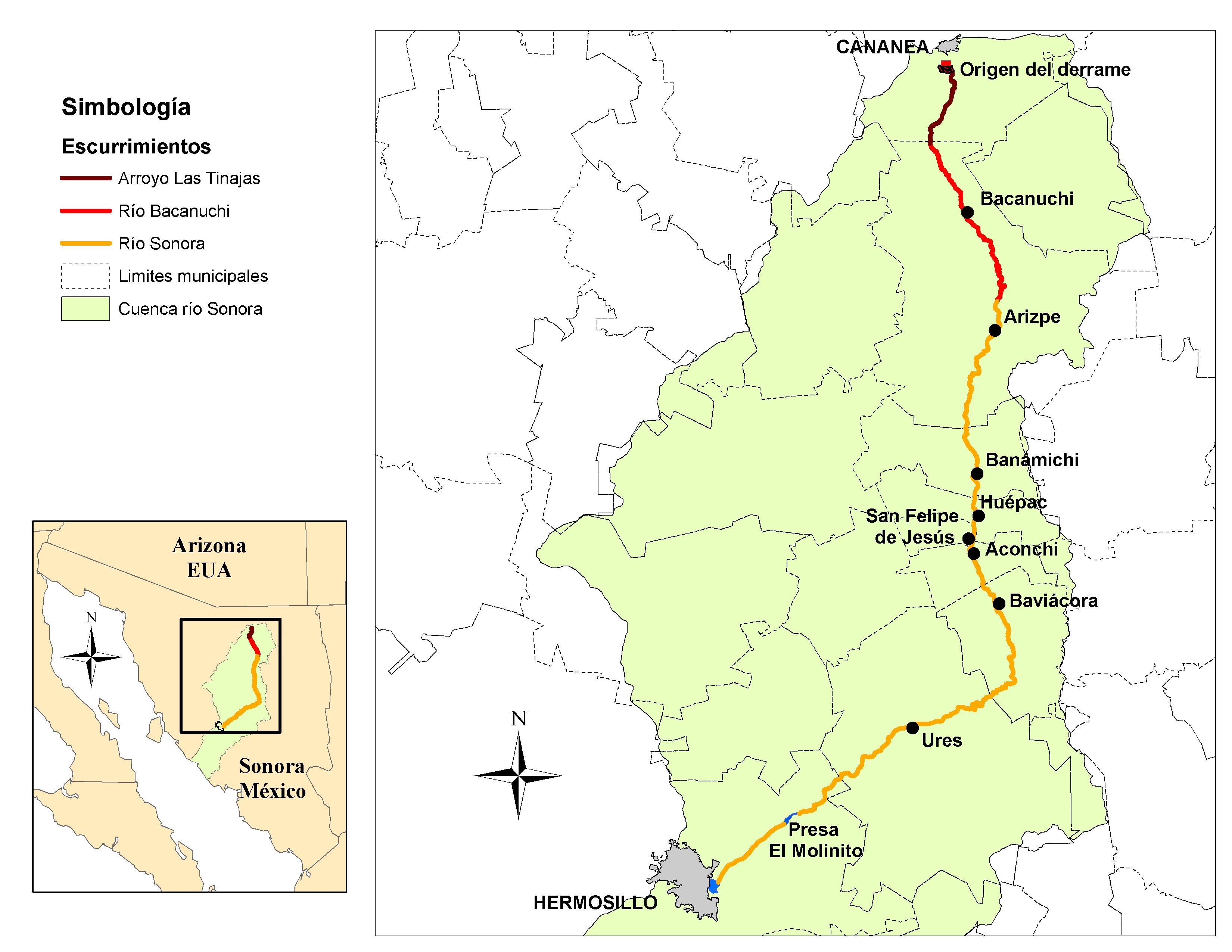 Gutiérrez, M., & Romero, F. 2015. Valoración del daño ambiental en la Cuenca del Río Sonora, asociado al derrame del 06 de agosto de 2014 de Buena Vista del Cobre. Memorias de la XXXI Convención Internacional de Minería. Asociación de Ingenieros Mineros y Metalúrgicos de México.